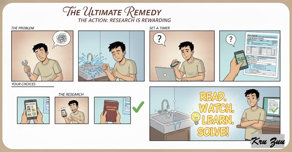 The Action: The next time you face a problem (a broken sink, a confusing tax form, a weird computer error), do not guess. Set a timer for 15 minutes. Spend that exact amount of time reading articles, watching a tutorial, or looking up the manual.