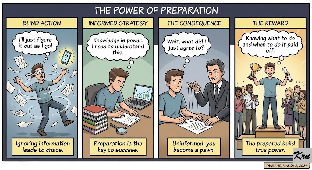 Blind action vs. Informed strategy. We live in an age of information overload, yet people still choose to be blissfully unaware. But the laws of the universe favor the prepared. Power isn’t just physical strength or a big bank account; power is knowing what to do and when to do it. If you treat information like useless noise, you will soon find yourself at the mercy of those who did their homework.