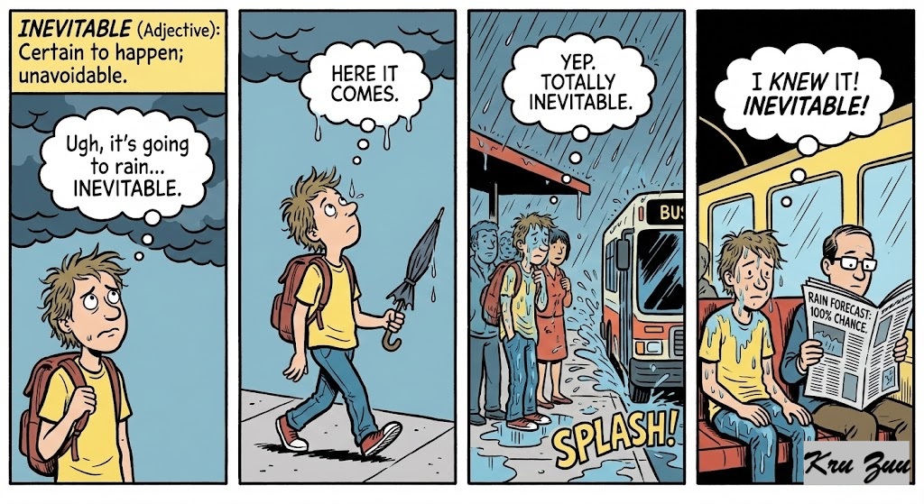 Inevitable (Adjective): Certain to happen; unavoidable.