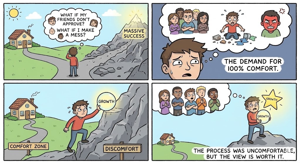 🛑 You think: “What if my friends don’t approve?” “What if I make a mess?” “What if someone gets temporarily upset with me?” You want massive success and growth, but you demand that the process be 100% comfortable for everyone involved.
