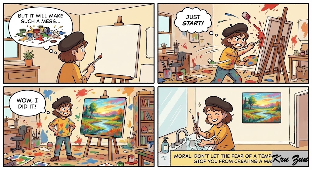 The Moral: Don’t let the fear of a temporary mess stop you from creating a masterpiece. 🎨