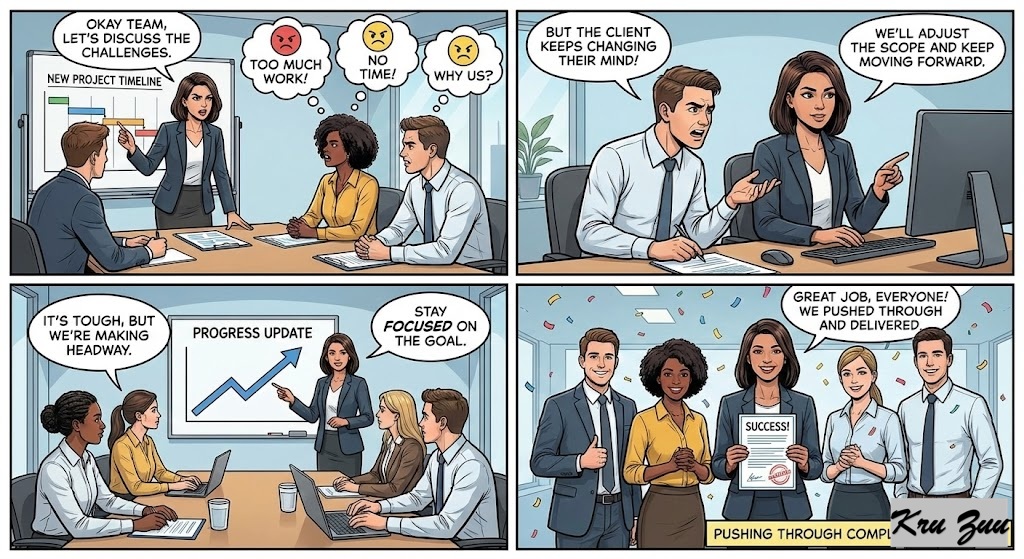 Pushing through complaints in a professional setting.