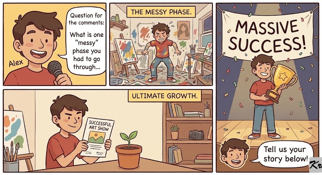 👇 Question for the comments: What is one “messy” phase you had to go through in your life that ultimately resulted in a massive success or personal growth? Tell us your story below!