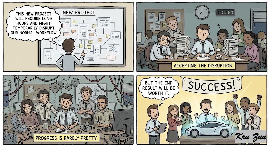 You think: “This new project will require long hours and might temporarily disrupt our normal workflow, but the end result will be worth it.” You accept that progress is rarely pretty.