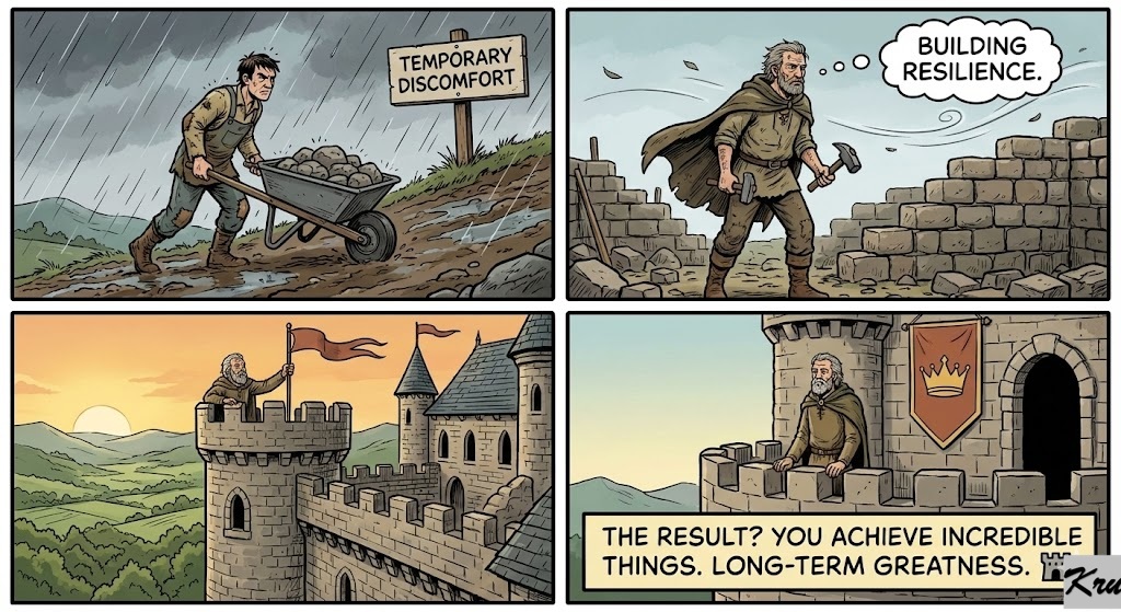 The Result? You achieve incredible things. You build resilience. You understand that temporary discomfort is the price of admission for long-term greatness. 🏰