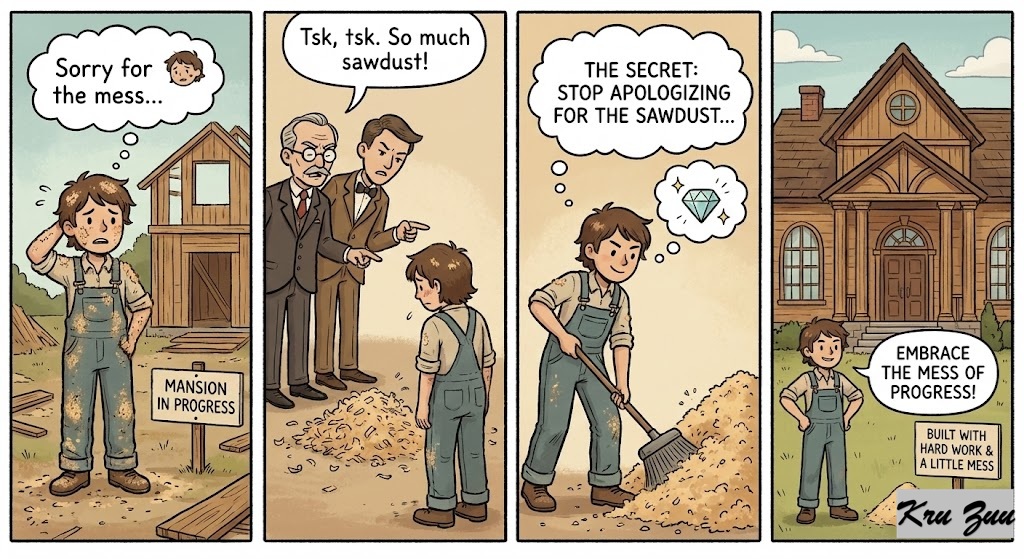 💎 The Secret: Stop apologizing for the sawdust when you are building a mansion. Embrace the mess of progress.