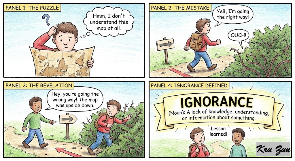 Ignorance(Noun): A lack of knowledge, understanding, or information about something.