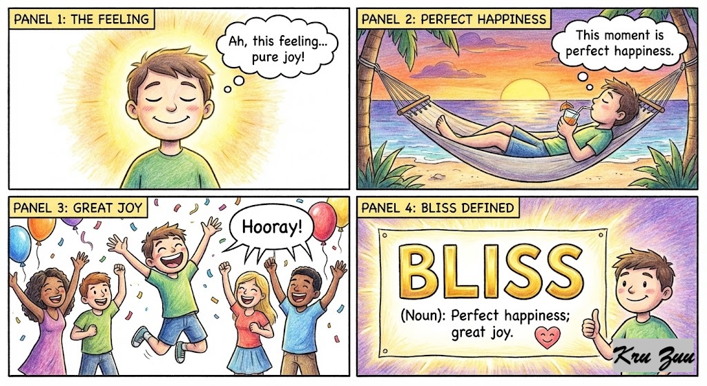Bliss(Noun): Perfect happiness; great joy.
