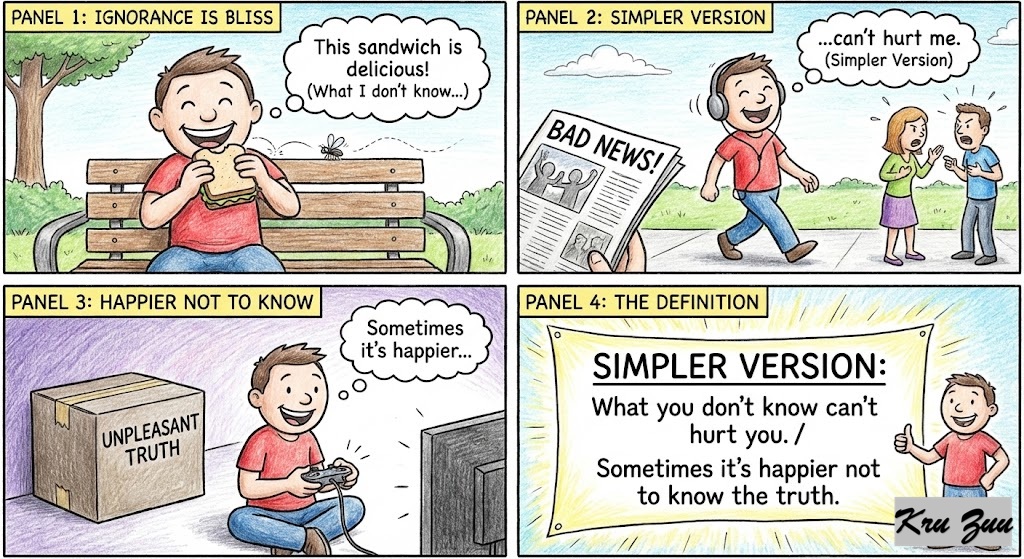 Simpler Version: What you don’t know can’t hurt you. / Sometimes it’s happier not to know the truth.