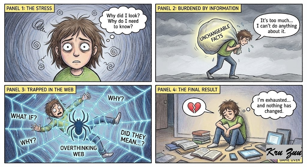 The Result? You are stressed, anxious, and burdened by information you cannot change and did not need. You are trapped in the “Overthinking Web.” 🕸️
