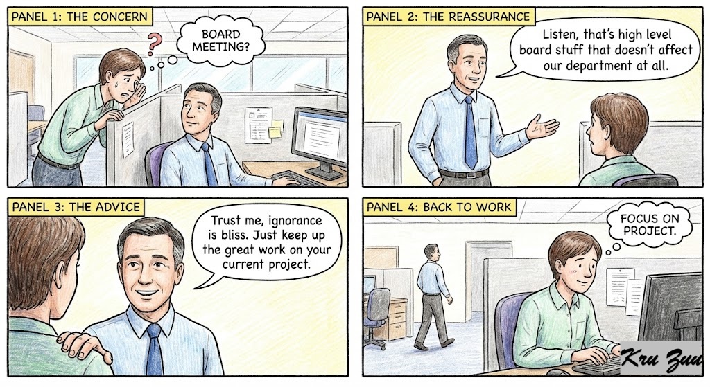 Manager: “Listen, that’s high level board stuff that doesn’t affect our department at all. Trust me, ignorance is bliss. Just keep up the great work on your current project.”