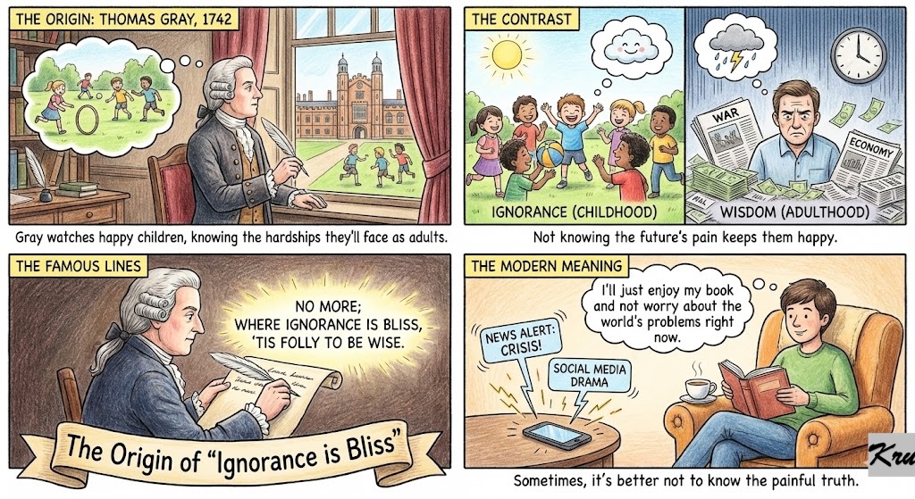 The Origin: This phrase was coined by the English poet Thomas Gray in his 1742 poem, “Ode on a Distant Prospect of Eton College.” He was watching young, happy schoolchildren playing, knowing that as adults, they would face the harsh, painful realities of life.