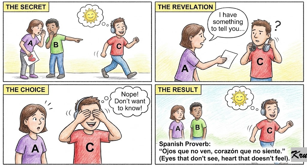 🇪🇸 Spanish:“Ojos que no ven, corazón que no siente.” (Eyes that don’t see, heart that doesn’t feel).