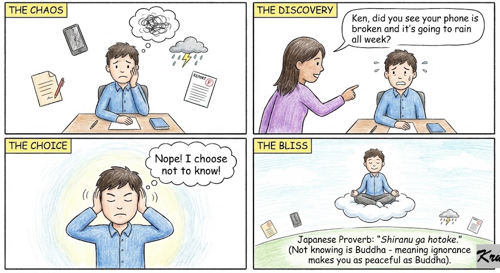 🇯🇵 Japanese:“Shiranu ga hotoke.” (Not knowing is Buddha meaning ignorance makes you as peaceful as Buddha).