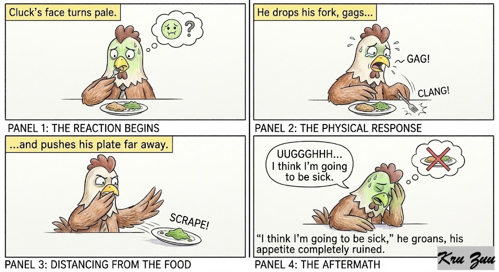 The Reaction: Cluck’s face turns pale. He drops his fork, gags, and pushes his plate far away. “I think I’m going to be sick,” he groans, his appetite completely ruined.