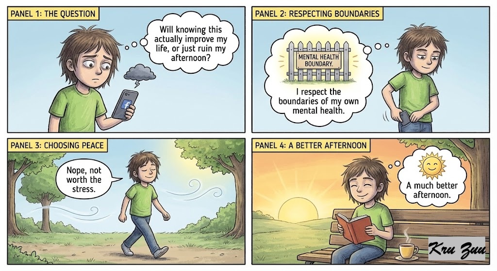 You think: “Will knowing this actually improve my life, or just ruin my afternoon?” You respect the boundaries of your own mental health.