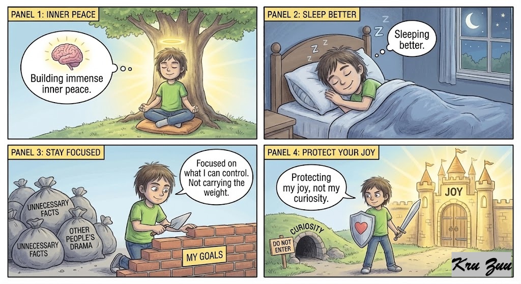 The Result? You build immense inner peace. You sleep better. You stay focused on what you can control because you aren’t carrying the weight of 100 unnecessary facts. You protect your joy, not your curiosity. 🏰