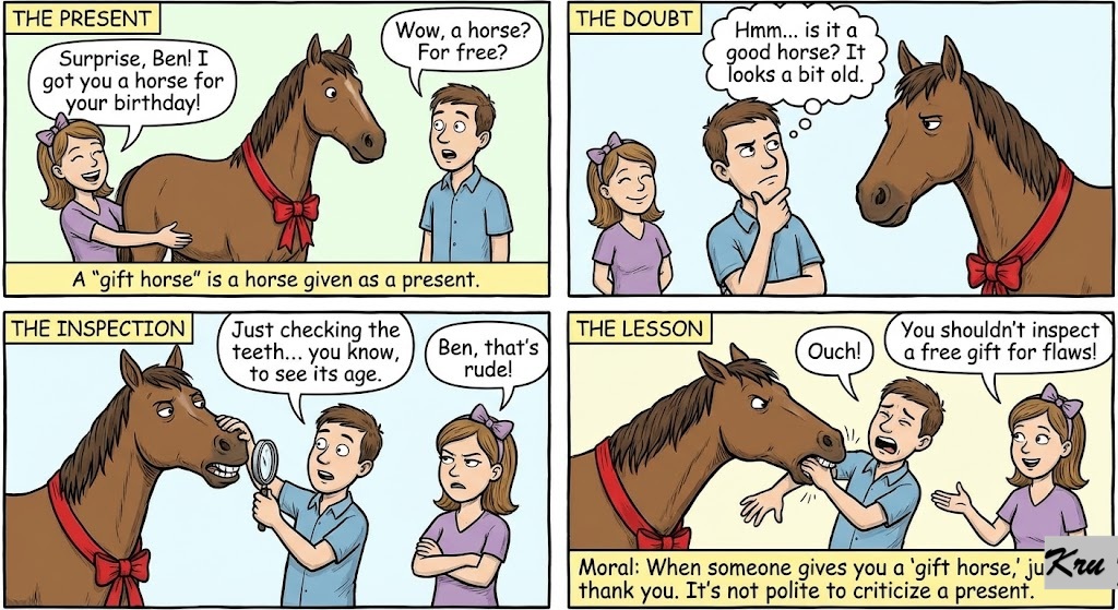 “Never look a gift horse in the mouth.”