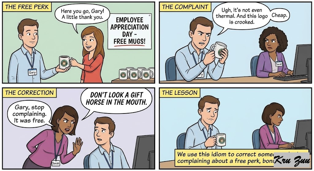 Simpler Version: Be grateful for gifts. / Don’t complain about free things.