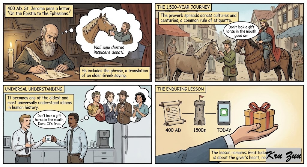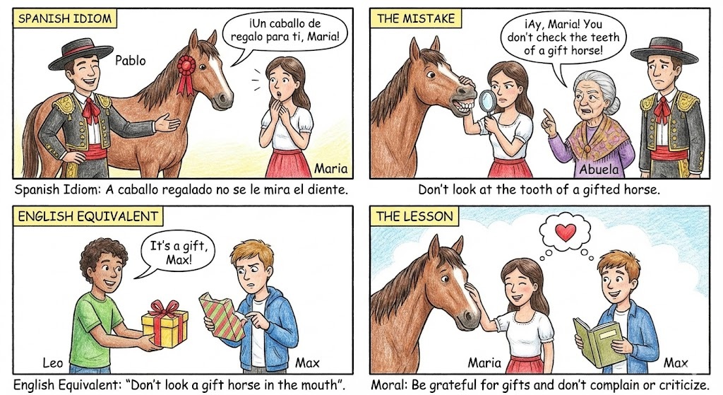 🇪🇸 Spanish: “A caballo regalado no se le mira el diente.” (Don’t look at the tooth of a gifted horse).