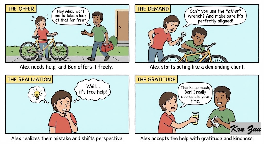 The Shift: You need to accept the free help without acting like a demanding client.