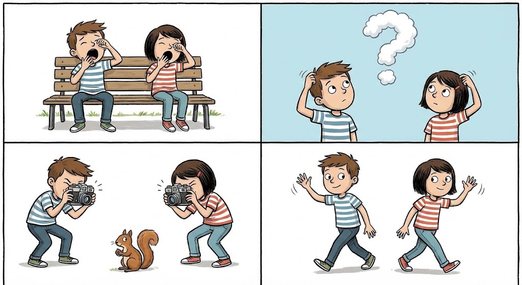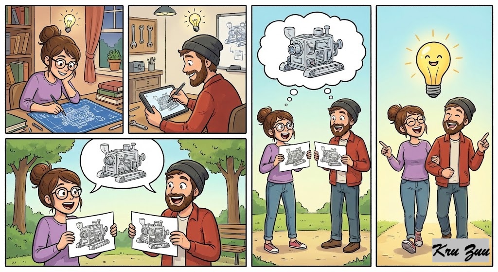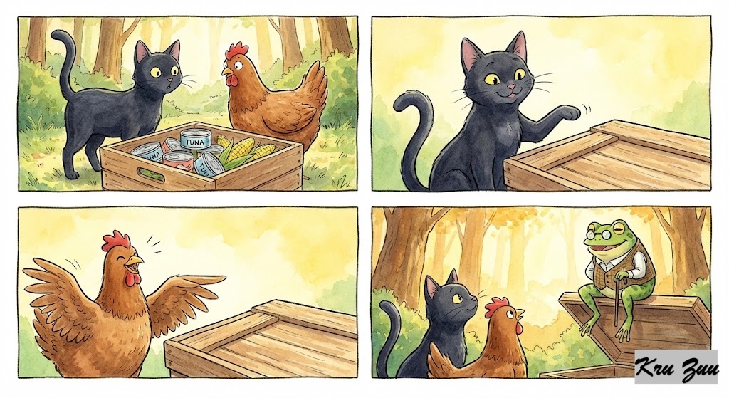 The Resolution: They look at each other, shocked. Cleo smiles, her tail twitching. “I was going for the leverage point.” Cluck laughs. “I just knew that was the weak spot!” Fred the Frog hops onto the open lid. He adjusts his tiny glasses. “Ribbit,” Fred says. “Different species, different styles, but the same solution. Great minds think alike.”