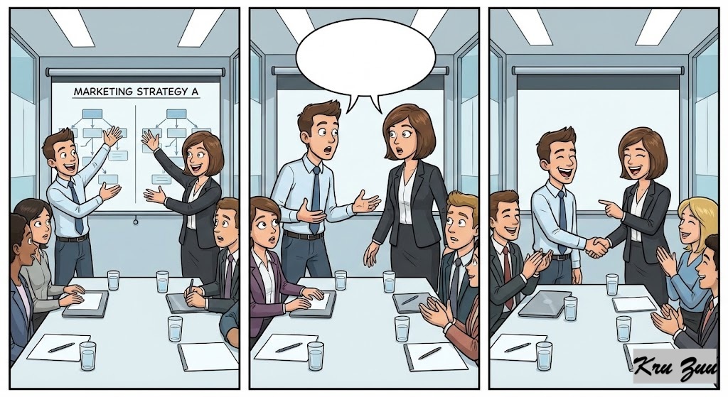 Situation: You and your boss both suggest the same marketing strategy in a meeting.