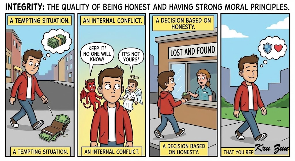 Integrity (Noun): The quality of being honest and having strong moral principles that you refuse to change.