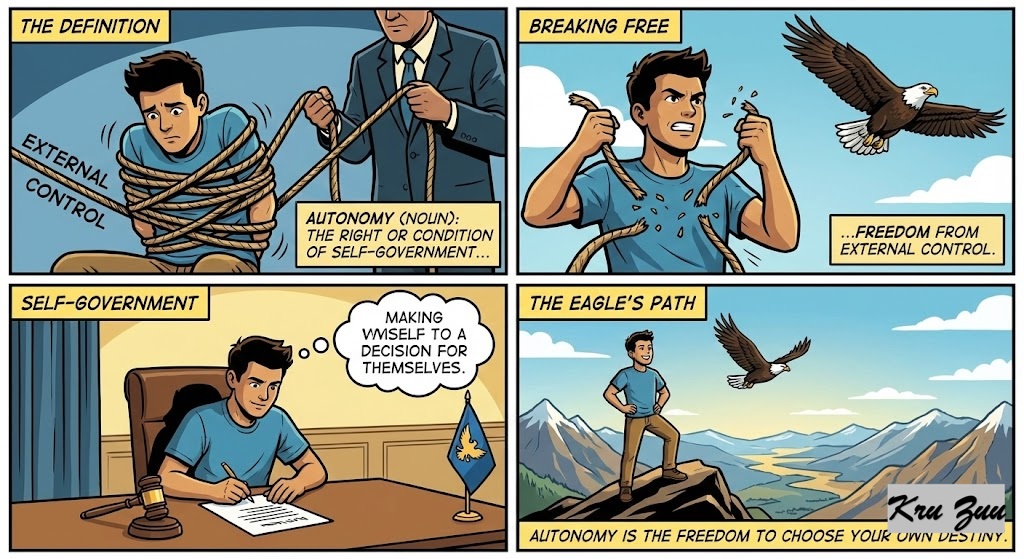 Autonomy (Noun): The right or condition of self-government; freedom from external control. 🦅