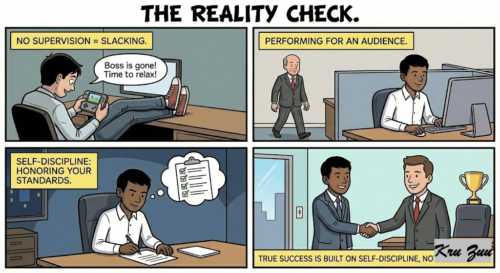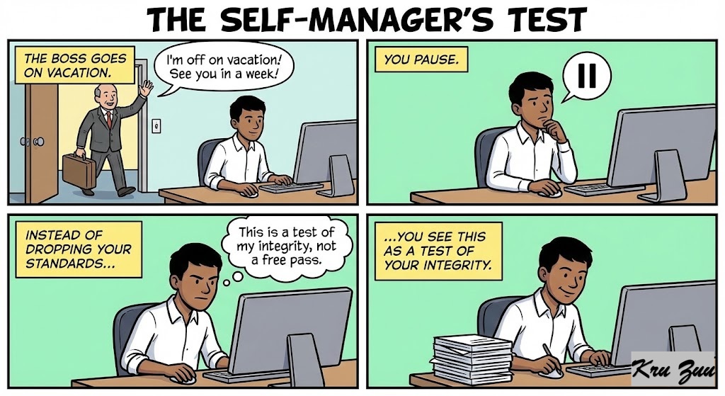 😇 The Hero (The Self-Manager): The boss goes on vacation. You pause. 🛑 Instead of dropping your standards, you see this as a test of your integrity.