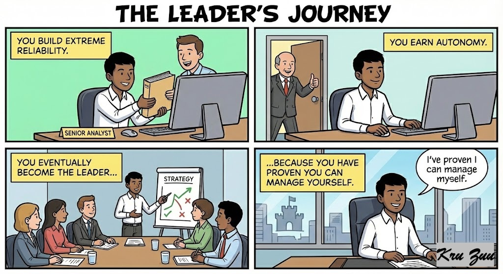 The Result? You build extreme reliability. You earn autonomy. You eventually become the leader because you have proven you can manage yourself. 🏰